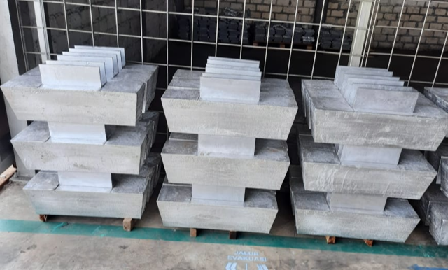 Cathodic protection blocks prepared for corrosion control in marine infrastructure environments.